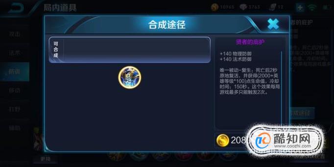 第六件装备可以出贤者的庇护,+140物理防御和+140法术防御,被动是死亡后两秒原地复活并获得(2000+英雄等级*100)点生命值,有150秒冷却时间。并且每局游戏最多使用两次,站起来继续输出。