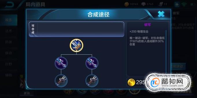第四件装备就是增加物理伤害最高的装备——破军了,它的属性是+200物理攻击,被动是对生命值低于50%的敌人造成额外30%伤害。有了这件装备,百里守约二技能命中c位就是致命伤害。