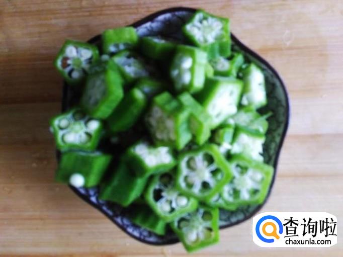 然后把秋葵清洗干净,把头尾去掉,切成薄片。