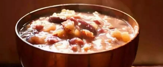 腊八粥是一种在腊八节用由多种食材熬制的粥,也叫做七宝五味粥。腊八粥的习俗,已非佛门所有,作为一种民间风俗,农历十二月八日吃腊八粥,用以庆祝丰收,一直流传至今。最早的腊八粥是红小豆来煮,后经演变,加之地方特色,逐渐丰富多彩起来。腊八粥传说来自印度天竺,农历十二月初八是佛陀成道纪念日,俗称“腊八节”,在佛教称“法宝节”。