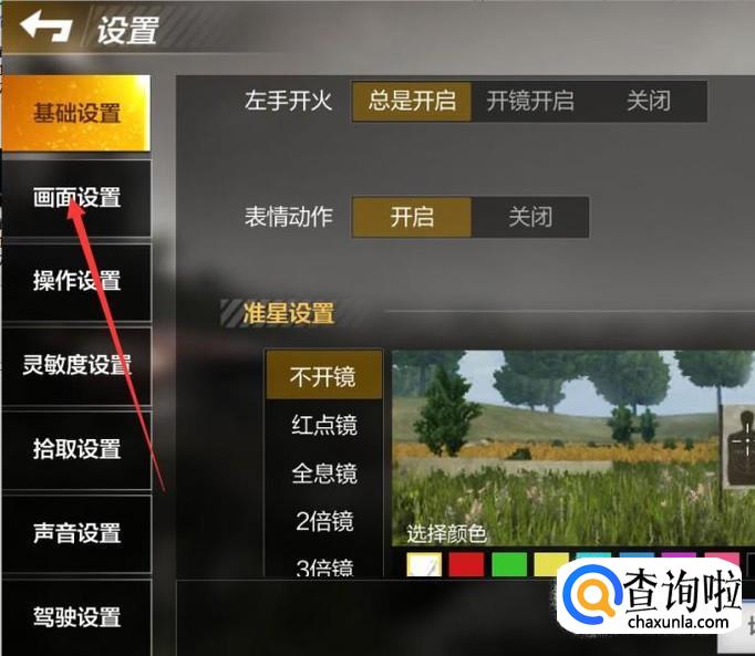 之后在设置里面找到画面设置,然后点击进入到里面去,如下图。