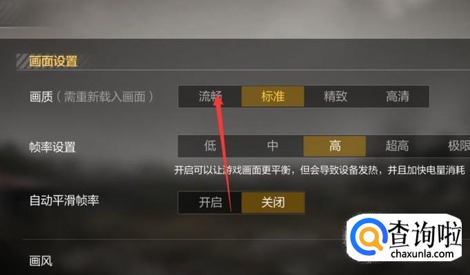 进入之后把画面的质量设置成为低的,如下图。