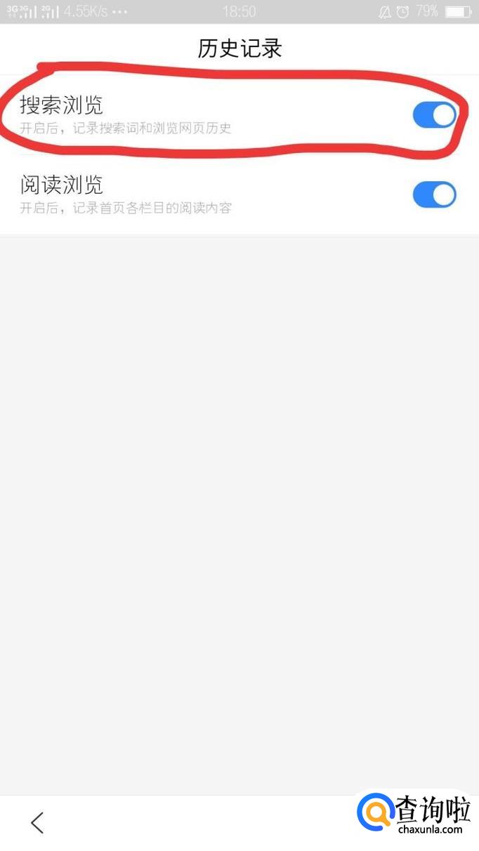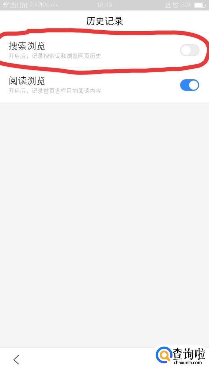 在历史记录页面中,把搜索浏览这个选项给关掉,这样后期,就自动清除了。