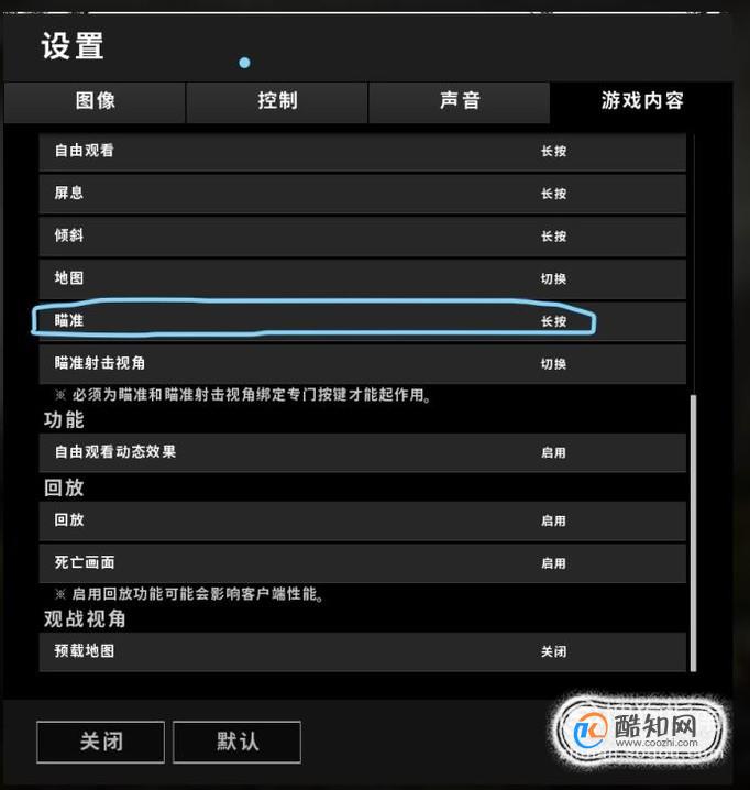 如图所示,可以看见瞄准的方式的长按鼠标右键。在游戏中,我们长按鼠标右键就可以出现第二张图的肩射效果了。
