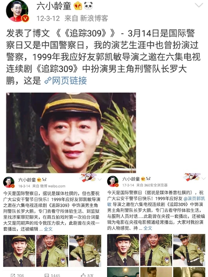 网友还扒出,六小龄童在各种大小节日里每年重复一段话,疯狂蹭热点。