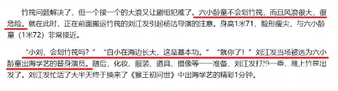 但很明显,nili六小龄童并没有承认的打算,几个月后提到这个片段,不会划竹筏的六老也完。全。没。有。提到替身的帮忙