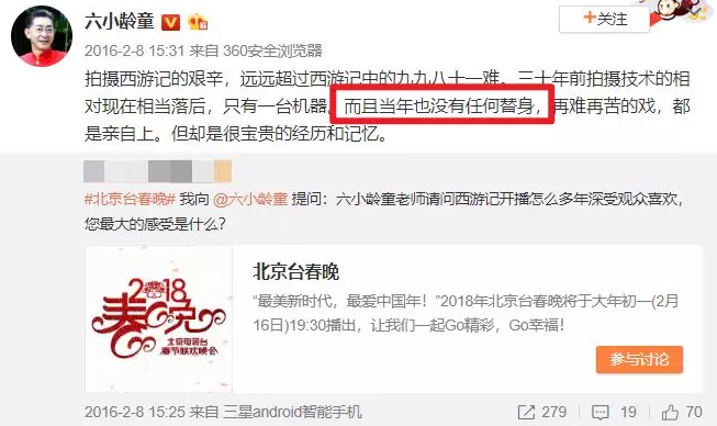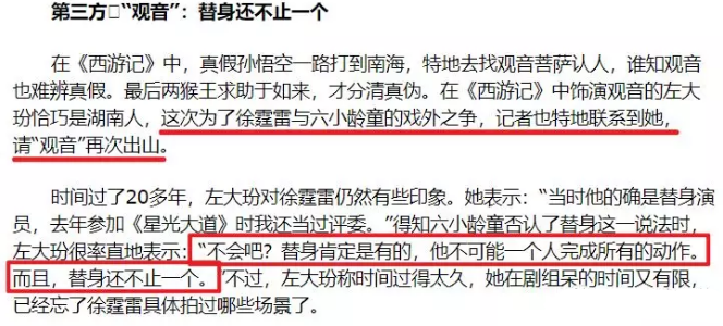 问题是徐霆雷这事儿不仅有合照为证,还有第三方“观音”直接出来打脸猴王,六小龄童的替身远不止一个