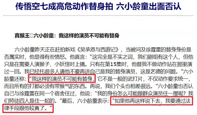 六学体更新:“我这样的演员不可能有替身”,法律手段警告!