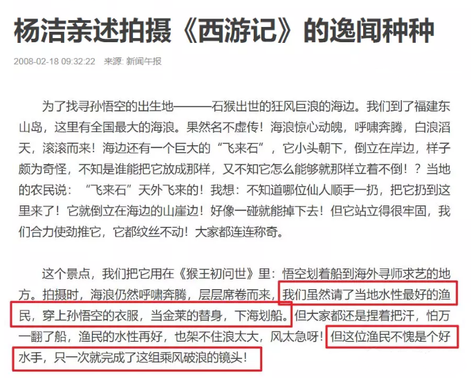 但当年第一集,《猴王初问世》的出海学艺片段,就是由当地渔民作为替身出演的↓