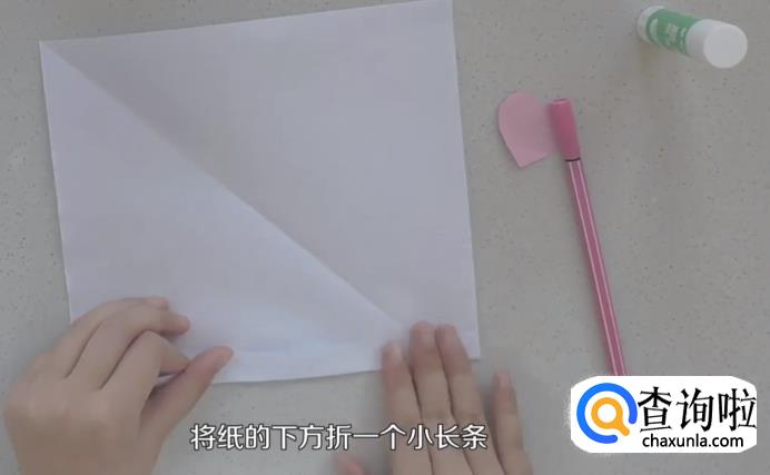 先在纸的下方折一个小长条。
