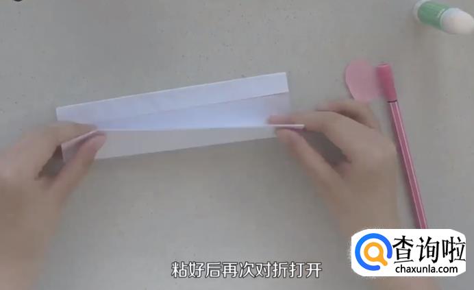 然后把纸对折,接着把小长条部分展开,涂上胶棒。