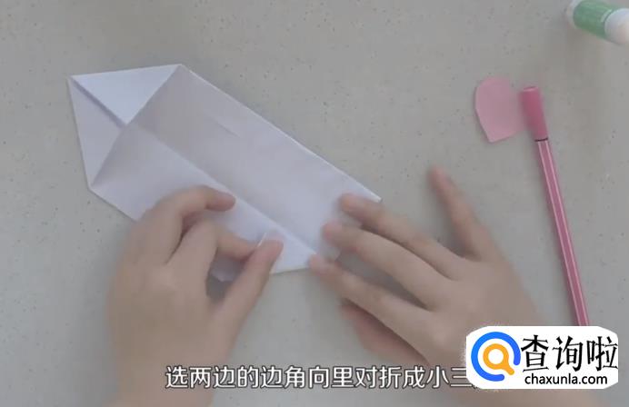 把两边的边角向里对折成小三角。