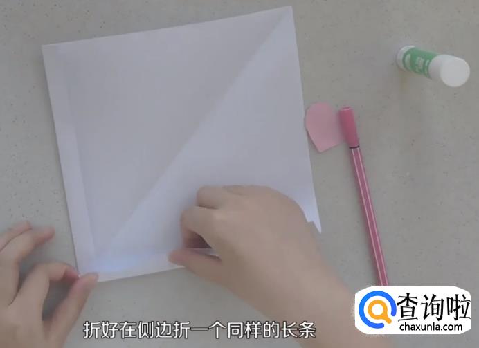 折好后,在侧边折一个同样的长条。