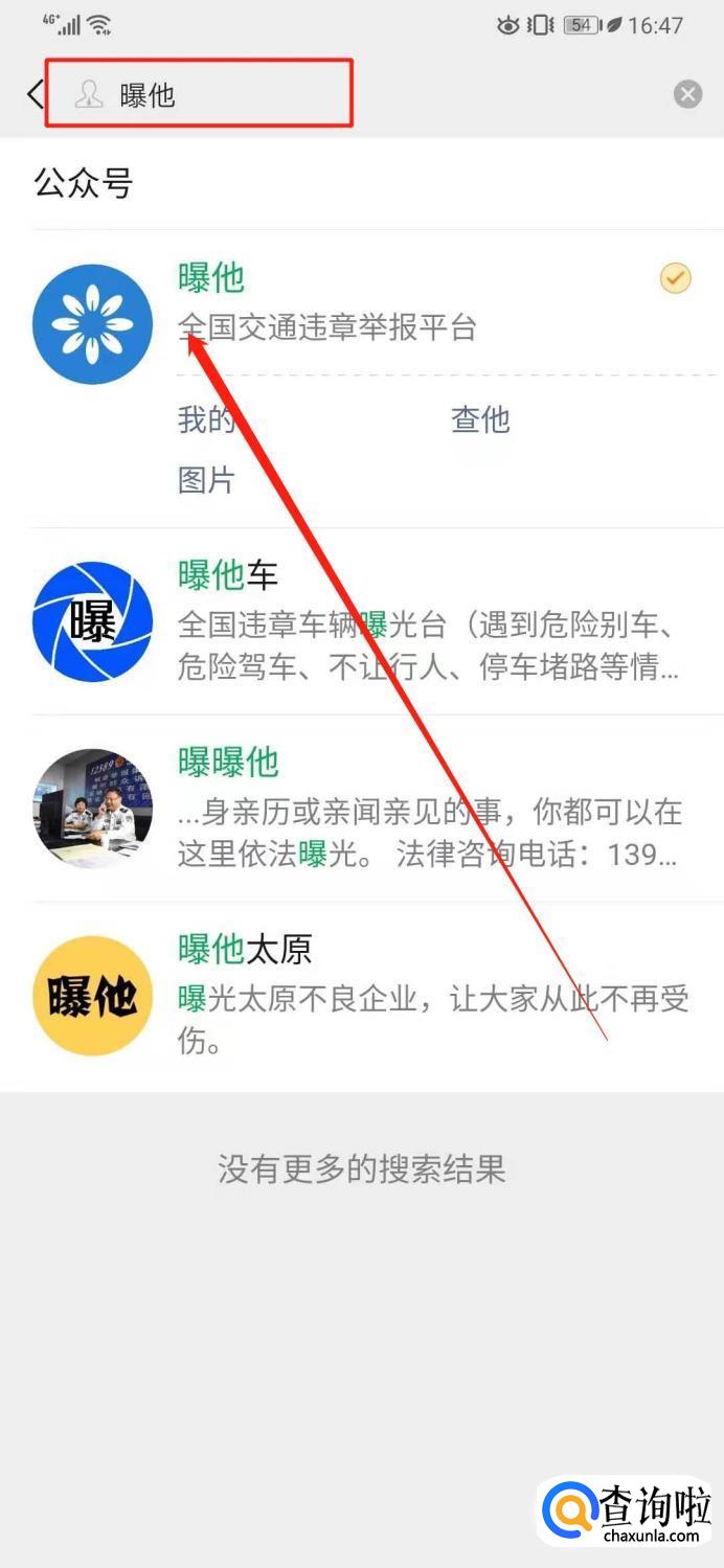 然后在搜索框里输入“曝他”,点击搜索并关注他。