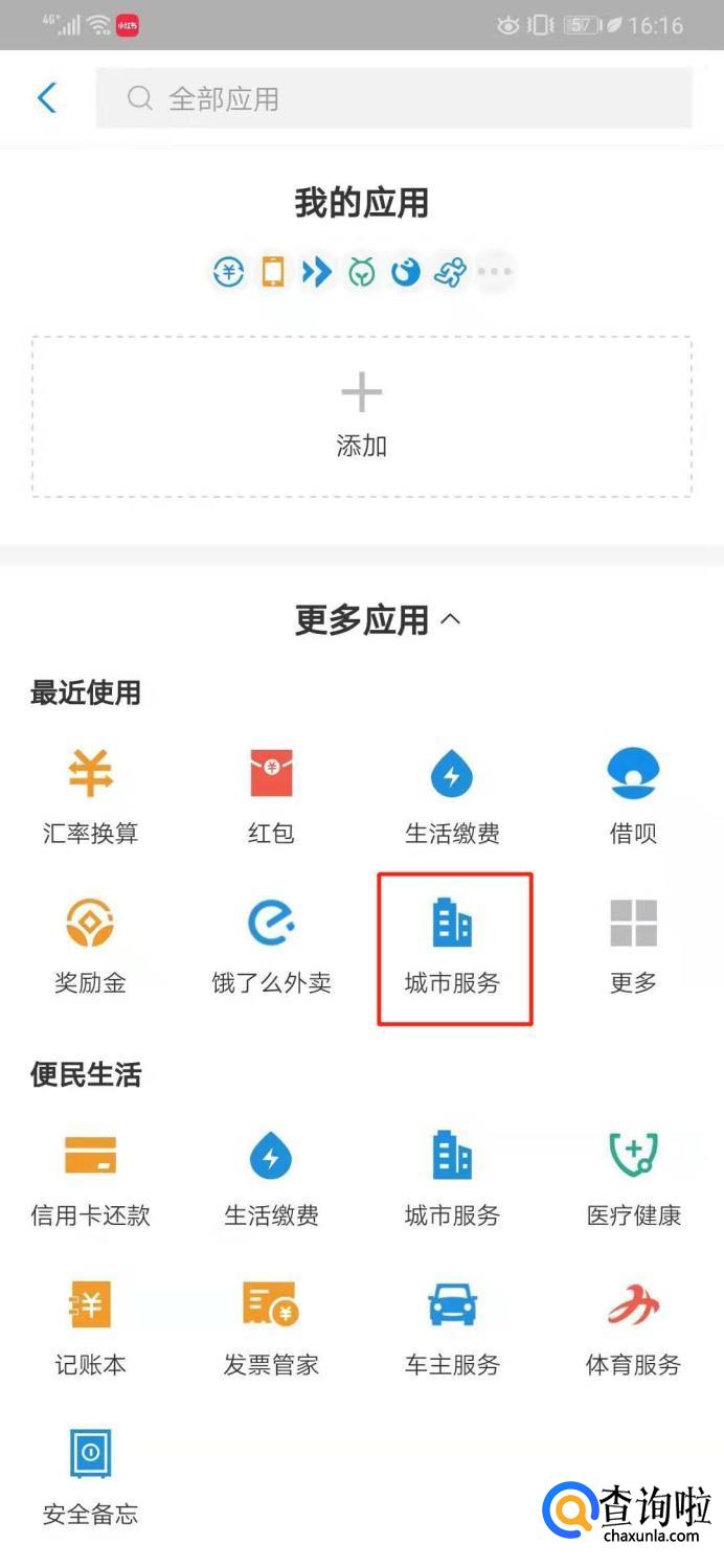 接着我们在下方“便民生活”栏中找到“城市服务”选项,点击进入。