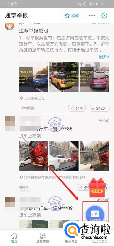 这时我们需要上传举报车辆的照片,照片审核处理成功即可。