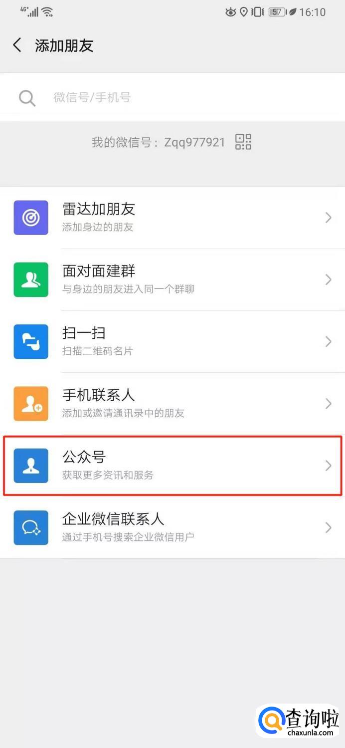 首先我们打开【微信】-【添加朋友】-【公众号】。