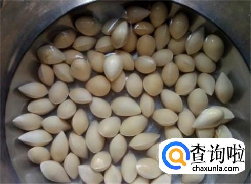 白果外皮有一层果皮,用手将这层果皮全部剥去,就会看到白花花的白果了。