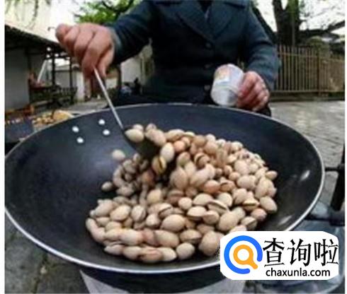 一口大铁锅烧热,里面不能有任何水分和油污,改用小火,把白果放进去,一定要不断的翻炒。
