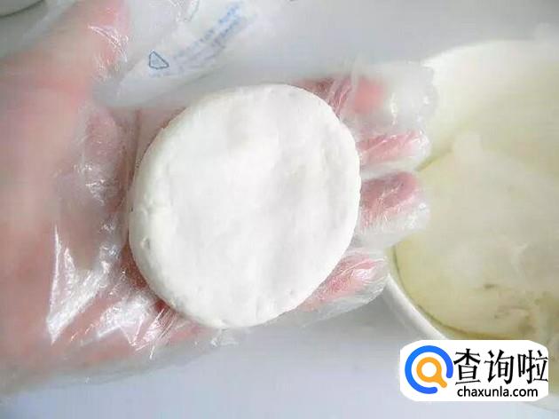 将其和成光滑的面团,然后静置十分钟,弄一块面团,在手里按扁呈圆形。