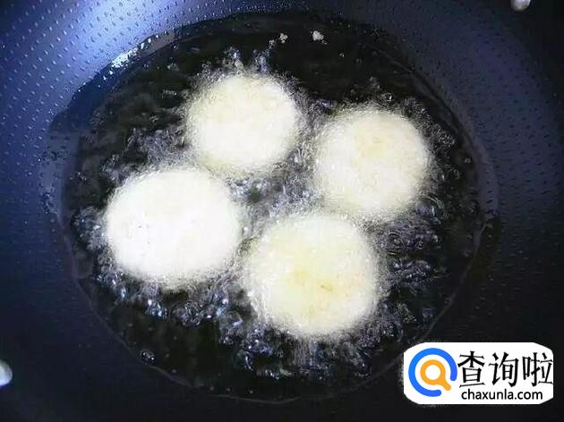 依次做好之后,将其放入油锅进行炸制,在油锅五成热的时候放入。