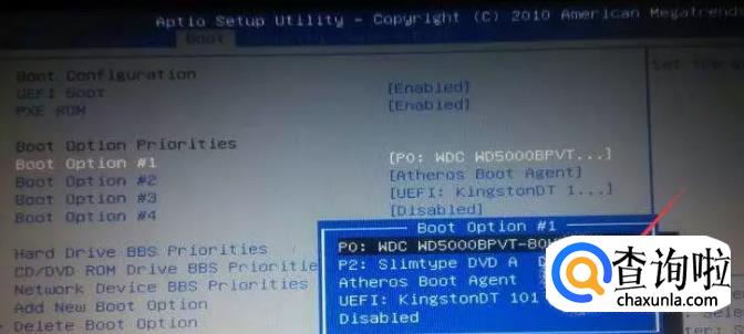 或者进BIOS 的BOOT选项下调试U盘为第一启动均可