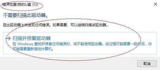 弹出"错误检查"对话框,点击"扫描并修复驱动器"图标。如图所示,本例到此希望对大家能有所帮助。
