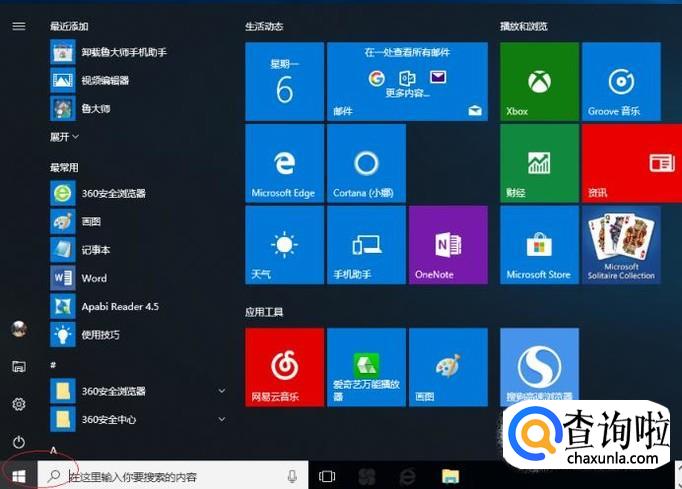 启动Windows 10操作系统,如图所示。点击任务栏"开始"按钮,用于弹出开始菜单。