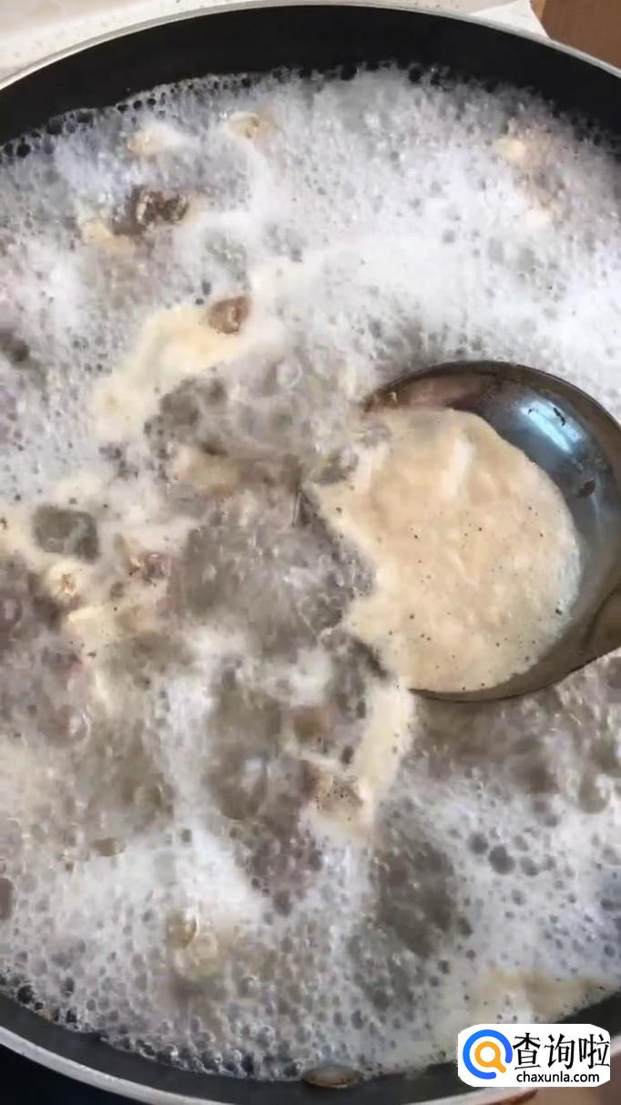 接着往锅中加入适量的清水,把牛肉倒进去并加入适量的香油,开大火烫烫3分钟,如下图所示。