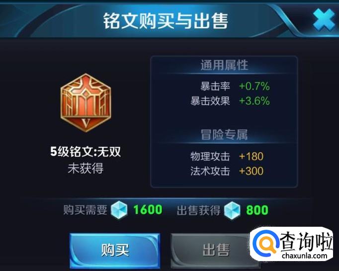 铭文无双,单个加暴击率+0.7%、暴击效果+3.6%,买满后就厉害了7%暴击率和36%暴击效果,暴击效果决定暴击产生的伤害。