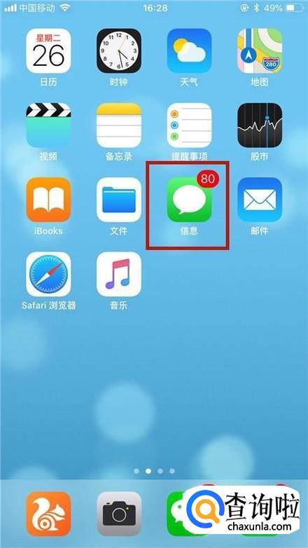 首先在我们的手机桌面上找到信息并点击它,如下图所示。