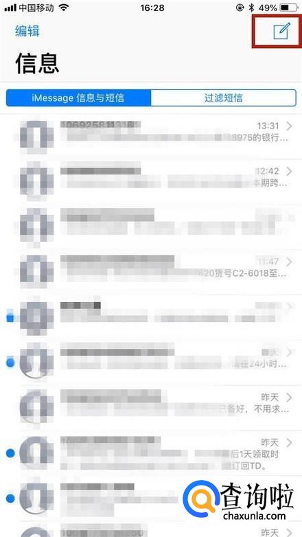 然后点击屏幕右上方的写短信图标,如下图所示。