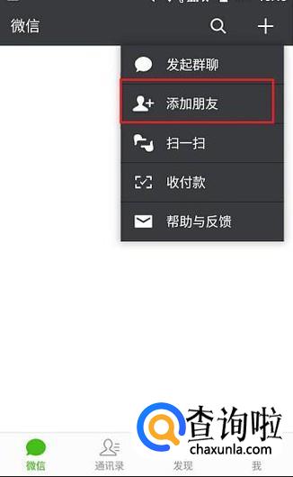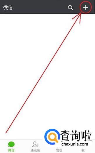 首先,打开手机微信,点击微信首页右上角的“+”选项。