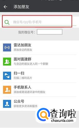 在搜索栏中,输入对方的QQ号码,即可搜索到对方的微信号。