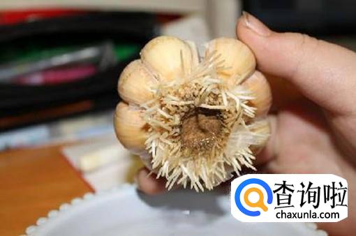 接着把大蒜头的根部带须的部分切掉一些,要不放不平整。但不能伤到蒜头的里面。