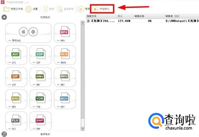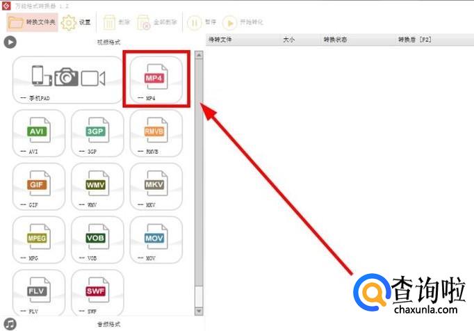 在万能格式转换器界面选择好你的视频格式,这里以“MP4”格式为例,点击“MP4”选项