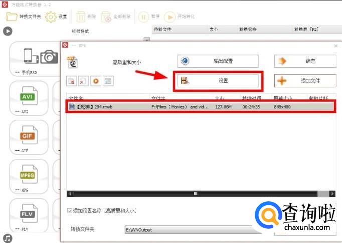 添加好文件后,选中你的视频文件,然后点击“设置”选项