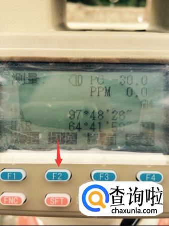 屏幕显示全站仪棱镜的高度数值,按F1键,输入棱镜高度数值,输入完成按F4键回车确认。再按F4回车继续,确认屏幕显示角度差为0。