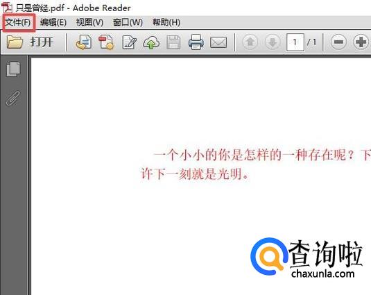 首先,我们打开我们的电脑,然后我们打开我们电脑上面的一个PDF文档,之后我们点击文件;