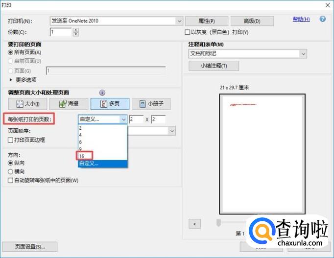 弹出的界面,我们点击每张纸打印的页数后面自定义边上的下拉箭头,弹出的界面,我们根据我们的需求点击选择多少页;