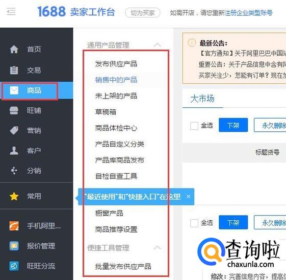 这样就可以进入阿里巴巴卖家后台页面,对自己的商品进行管理了。