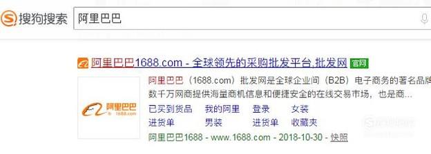 打开搜狗浏览器,在搜索框中输入“阿里巴巴”,点击阿里巴巴的官网进入页面。