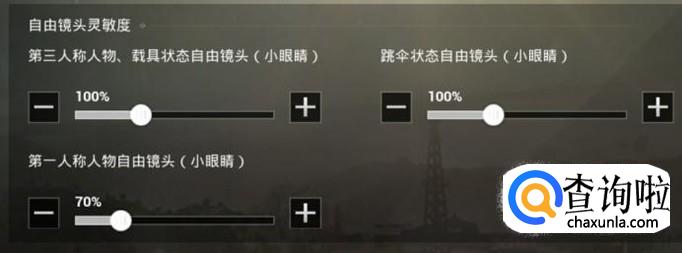 在“自由镜头灵敏度”设置界面,推荐灵敏度如图所示。