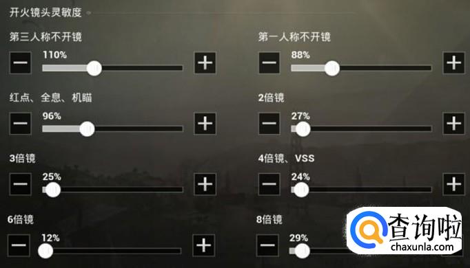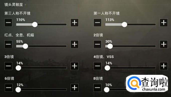 对镜头灵敏度,设置较低的话在巷战中会出现镜头移动不过来的现象,小编建议调到110,如图所示。