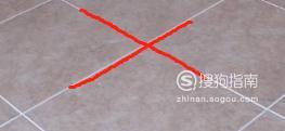 首先,我们可以在地上,选择地砖的缝隙作为一个十字的参照线。