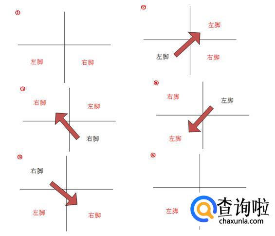这样一个完整的秧歌步便完成了,这里有一个简单的图表,按照这个顺序多多练习吧。