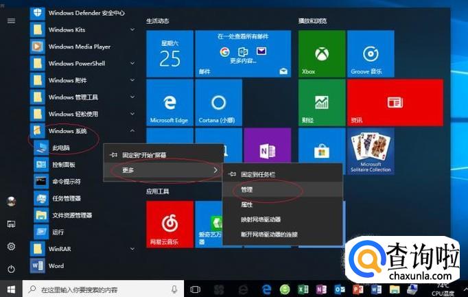 如图所示,拖动右侧垂直滚动条。展开"Windows 系统"文件夹,鼠标右击"此电脑"项。