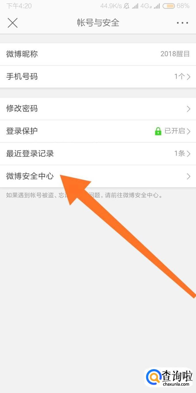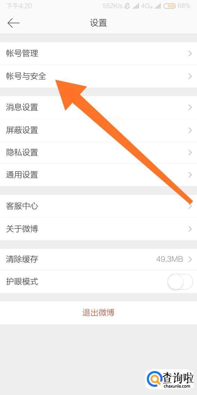 进入设置菜单页面后,再点击进入“账号与安全”设置选项。
