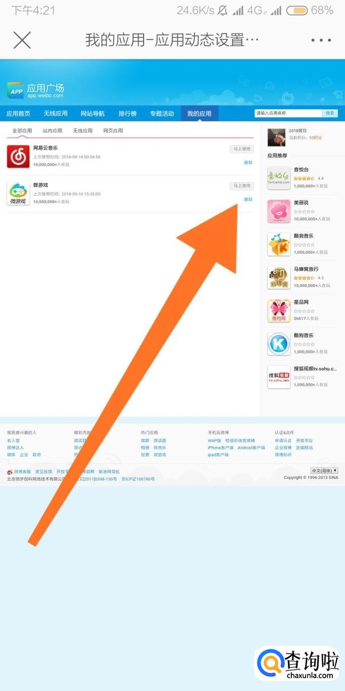 如果需要取消微博对第三方应用的授权绑定,进入微博应用广场网站即可取消,但是我们也可以直接通过手机微博客户端快速取消。接下来小编就告诉大家如何取消微博账号对第三方应用的授权绑定。