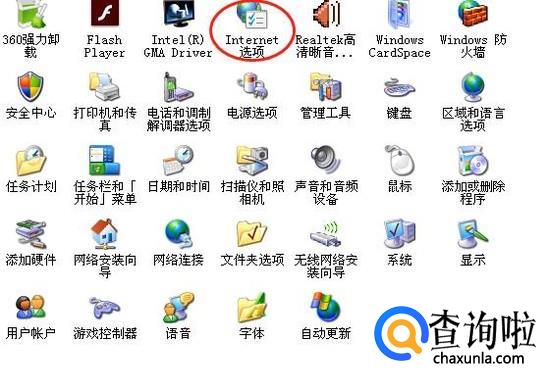 在“控制面板”框中双击“Internet选项”,打开“Internet属性”框。